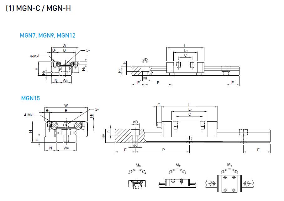 上银MG系列,是微小型滚珠线性好色先生黄污的型号。规格主要有MGN3、MGN5、MGN7、MGN9、MGN12、MGN15,以及对应的MGW7以上的宽幅型号。具体的规格尺寸,大家可以参照以下的上银微型直线综合好色规格尺寸表。
