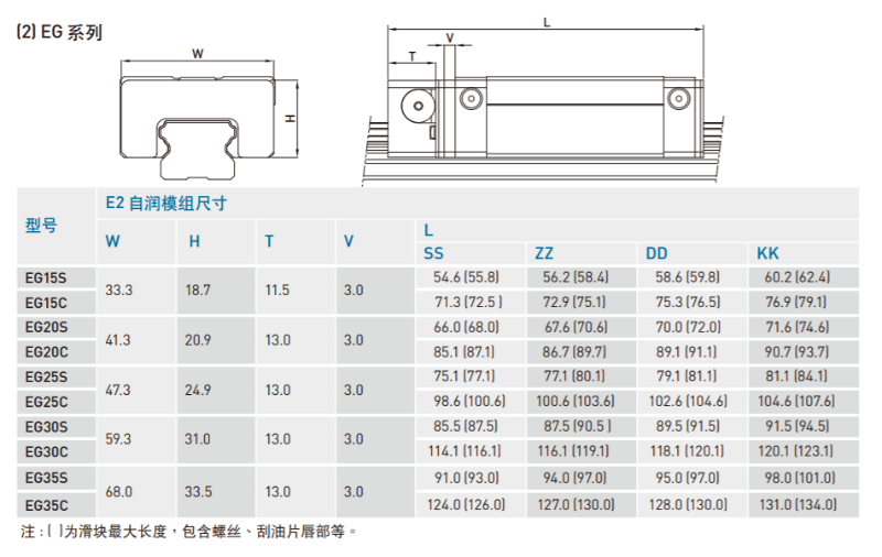 上银EG系列自润式综合好色规格尺寸表